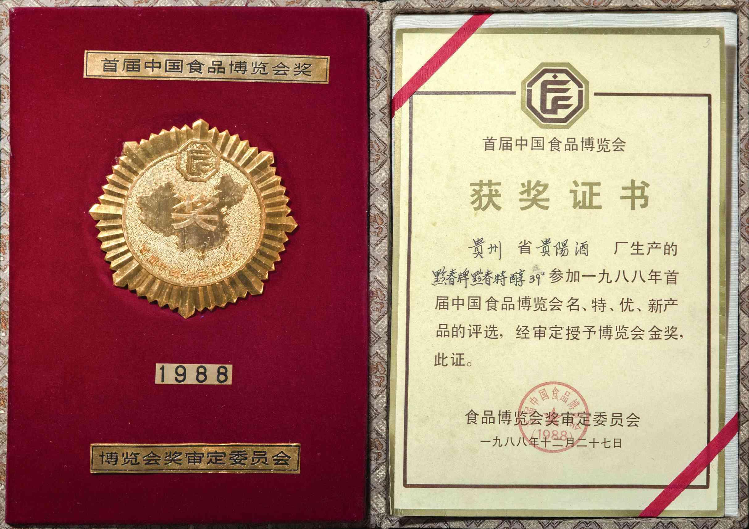 黔春酒——1988年中华人民共和国国家质量奖“优质奖”