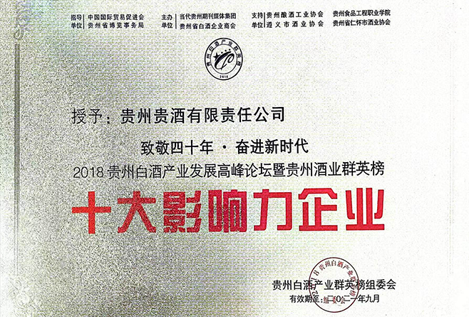 2018贵州白酒产业发展高峰论坛暨贵州酒业群英镑——十大影响力企业